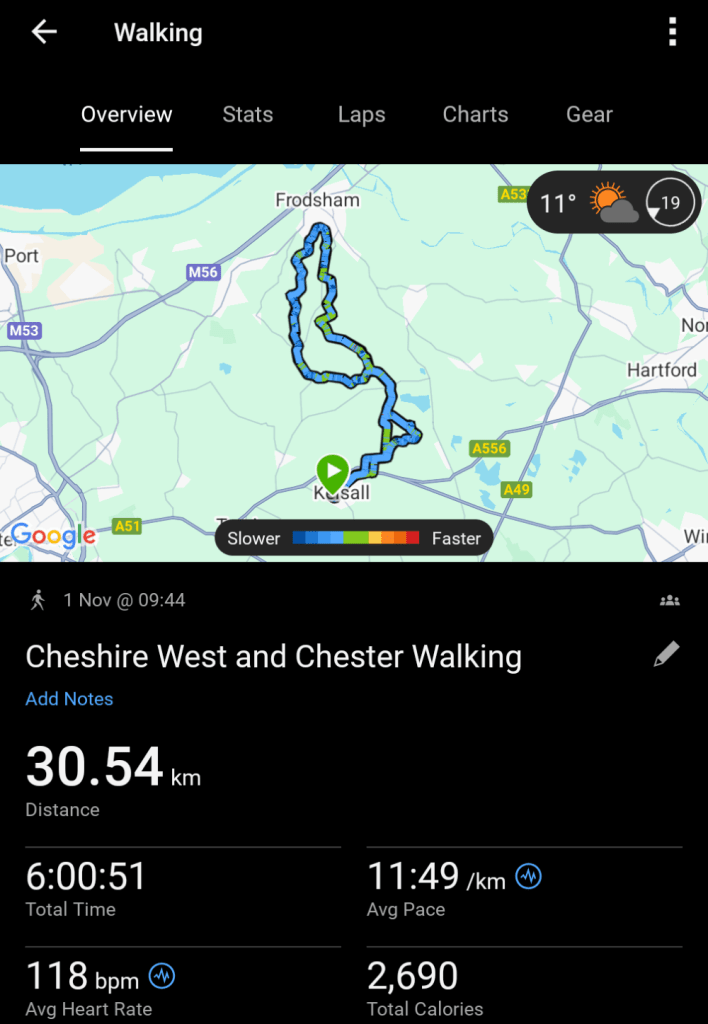 We went for a mammoth hike, walking over 30km across the Cheshire countryside. We were out for about seven hours, including a pub stop near home, but the time flew by completely as we chatted away and caught up on everything that had happened over the past few weeks.